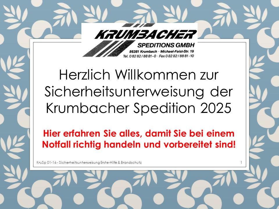 Herzlich Willkommen zur Sicherheitsunterweisung der Krumbacher Spedition 2025